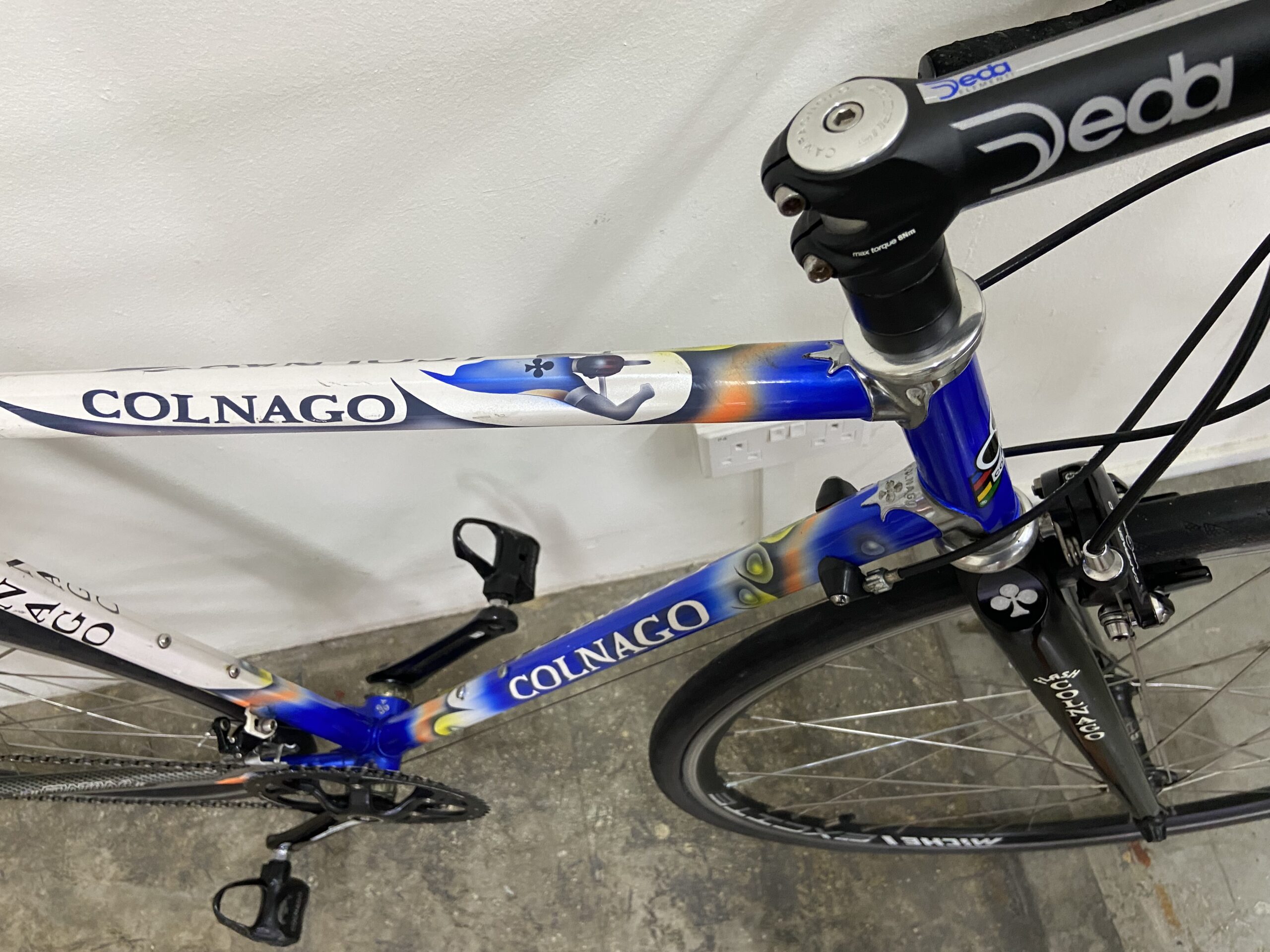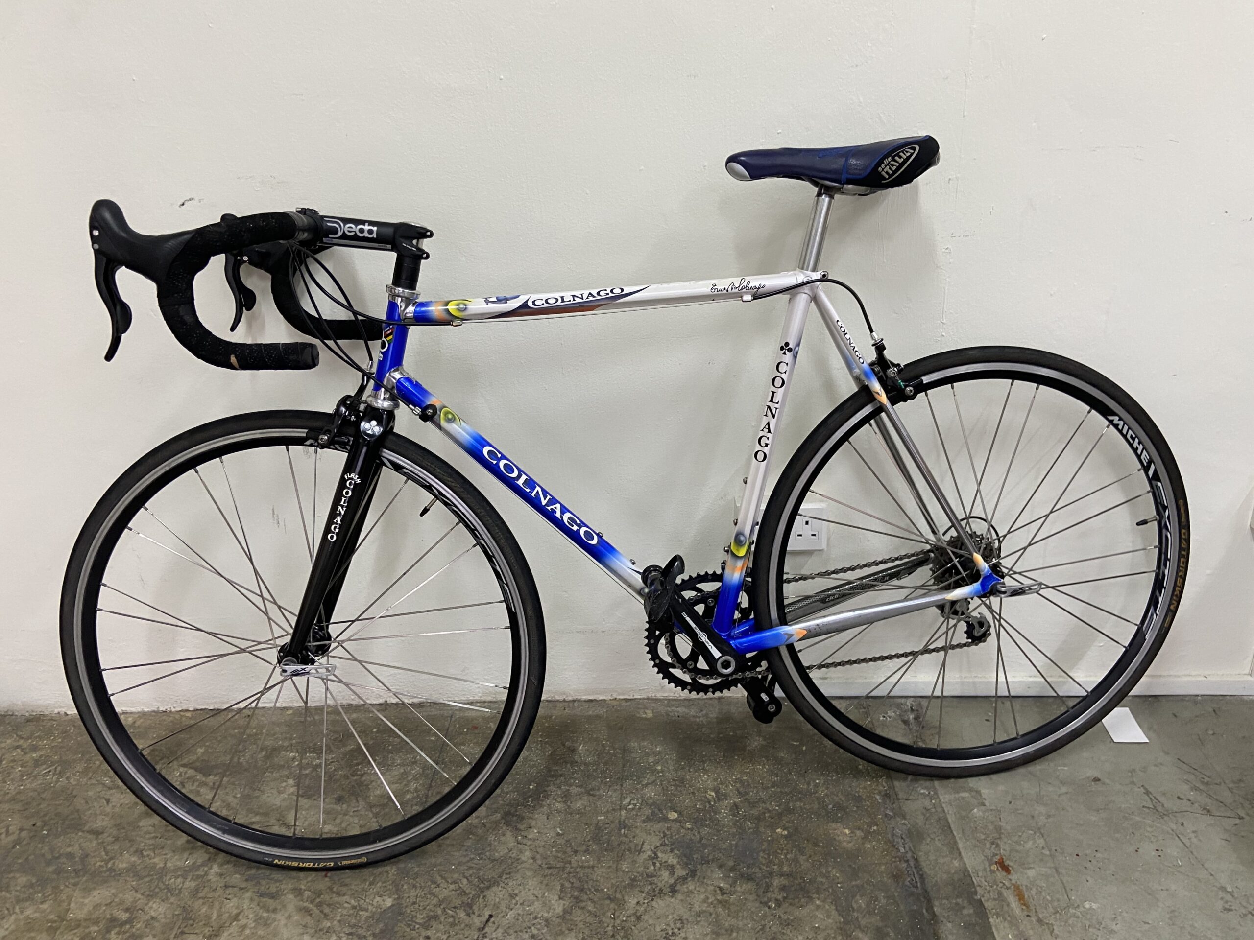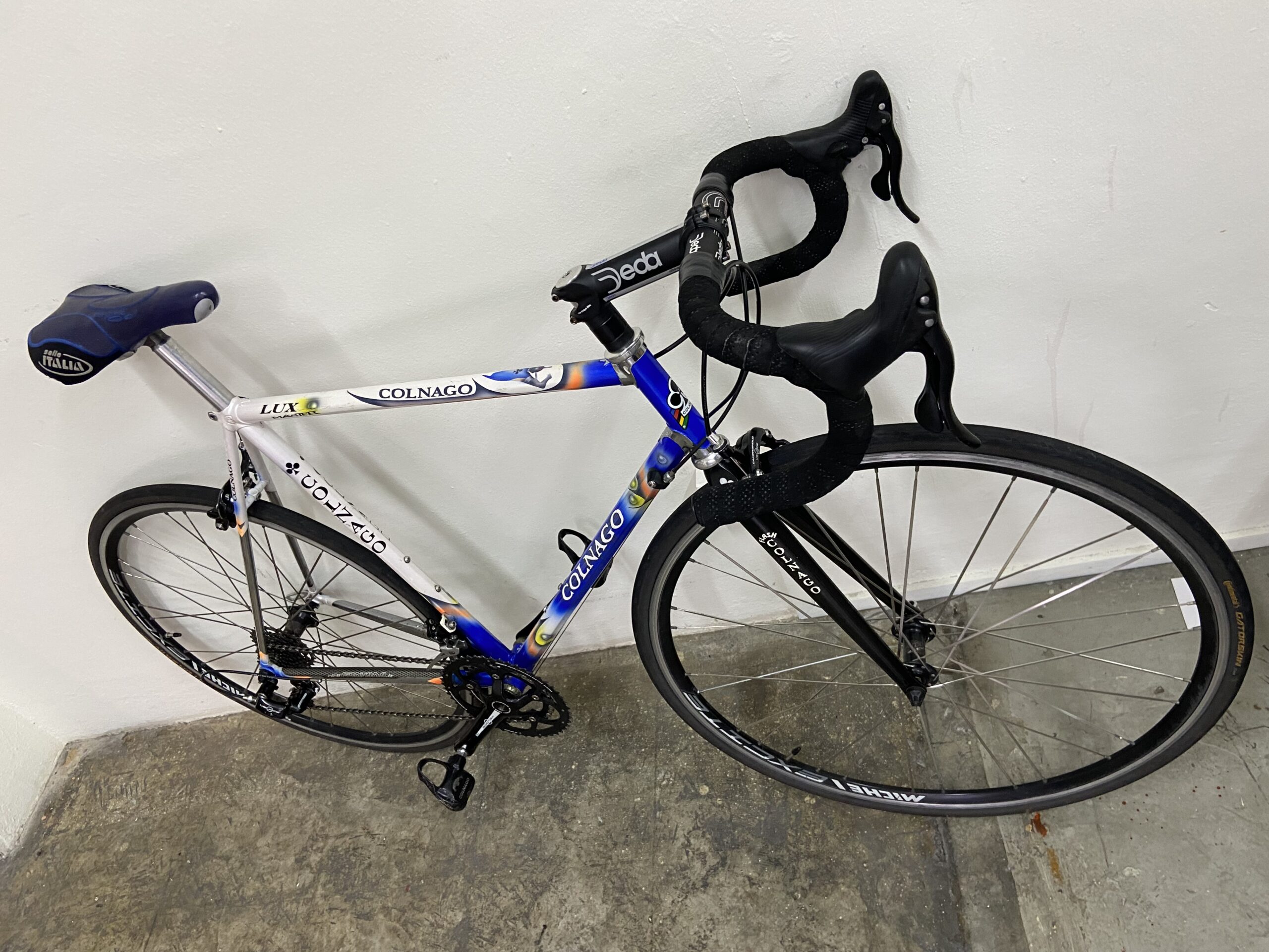 The COLNAGO MASTER series is known for its use of Gilco tubing, which is characterised by its star-shaped profile. This tubing was designed to offer a good balance of stiffness and compliance for a comfortable yet efficient ride. The “Lux” designation typically refers to a specific version or iteration of the Master frame, often featuring a lighter weight frame construction compared to earlier Master models. The bike is equipped with a 10-speed drivetrain, which was a common setup for road bikes in the late 1990s and early 2000s. The Master Lux is also known for its attractive appearance, often featuring intricate lug-work and unique paint schemes, like the Art Decor designs. Vintage Collectibility: The Colnago Master Lux, particularly those with original components and in good condition, are often sought after by collectors and enthusiasts due to their historical significance and classic appeal.