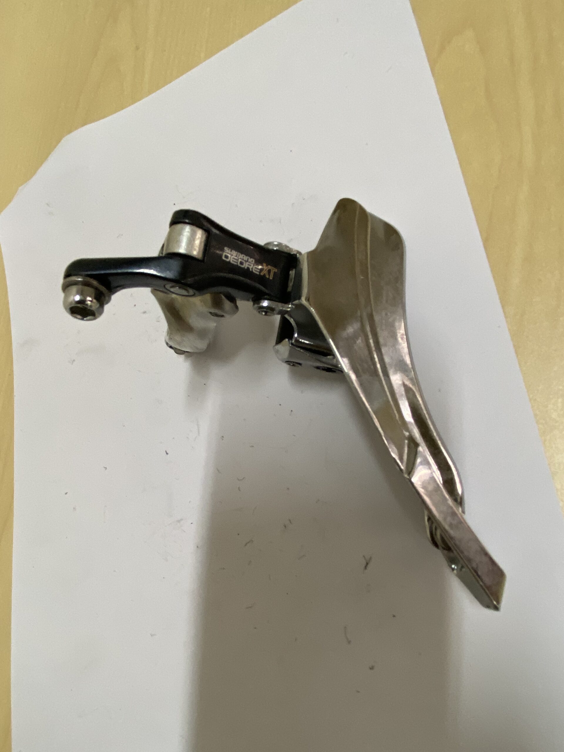 Used Shimano Deore XT front derailleur.